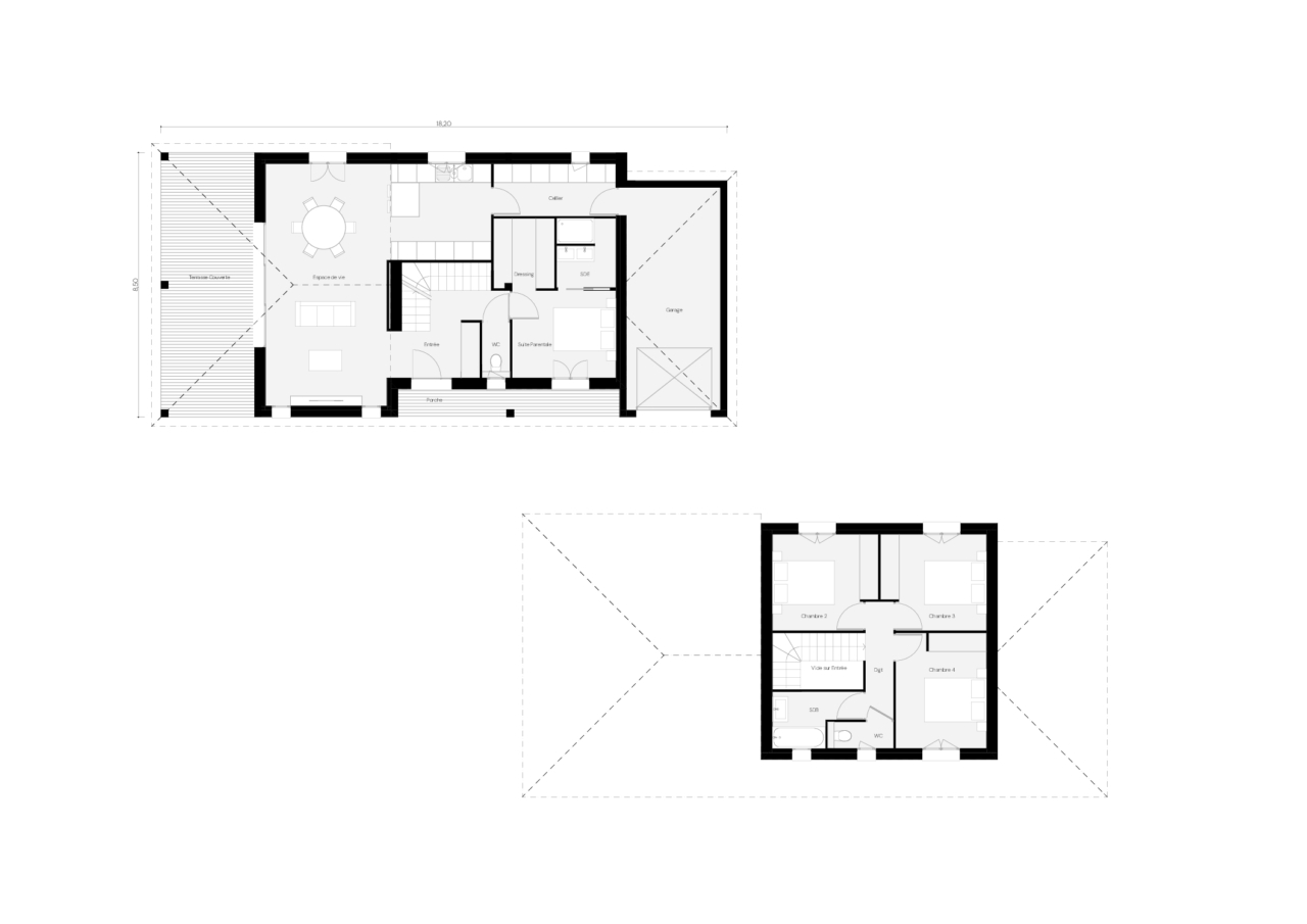 Maison familiale sur deux niveaux, conçue dans l'objectif de réduire son impact sur le terrain & de s'adapter également aux parcelles étroites, en ville notamment. Au rez-de-chaussée, se déploie une grande pièce à vivre en L laissant l'accès à l'immense terrasse couverte dans la continuité du bâtiment principal, un must have en Midi-Pyrénées. L'accès au garage se fait par le cellier, judicieusement positionné à l'arrière de la cuisine. Une vraie entrée avec placard permet de distribuer le WC du rez-de-chaussée, la suite parentale avec dressing & SDE volontairement dissociée de l'espace nuit principal, et laisse l'accès à l'escalier pour le premier étage. Ce dernier se compose de trois belles chambres, d'un WC indépendant et d'une salle de bain dédiée. Chacun son espace.